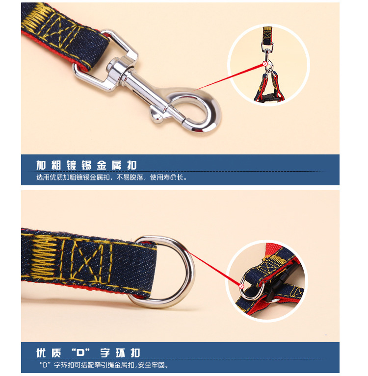 美汇特供:哒哒熊宠物牵引绳 牛仔胸背带狗狗牵引项圈套装狗绳 宠物用品