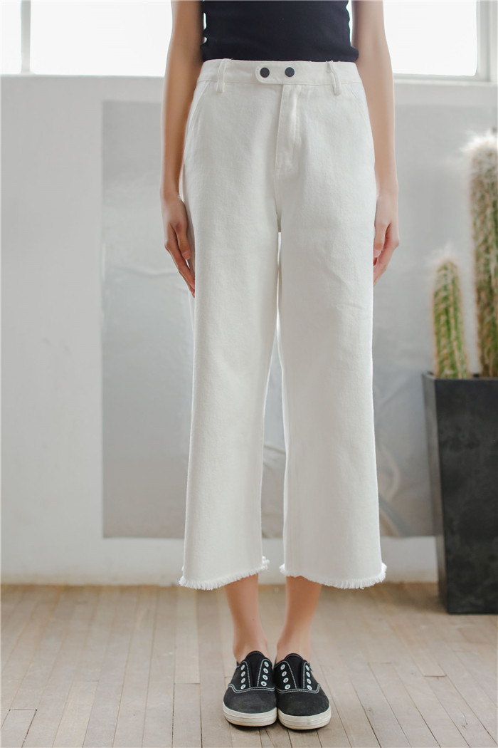 美汇特供:2018夏季新款韩版时尚百搭高腰复古宽松毛边九分阔脚裤牛仔裤女