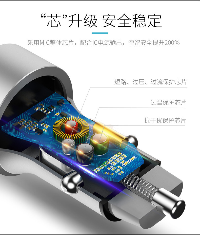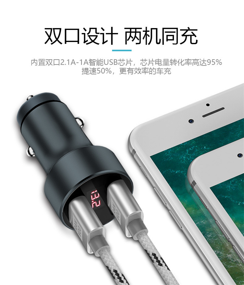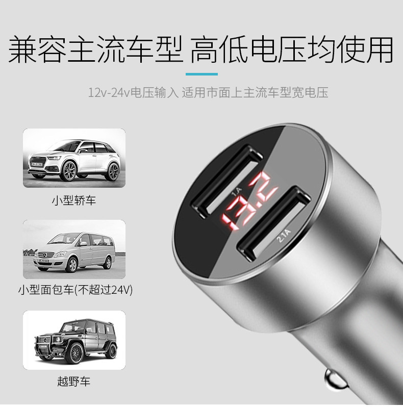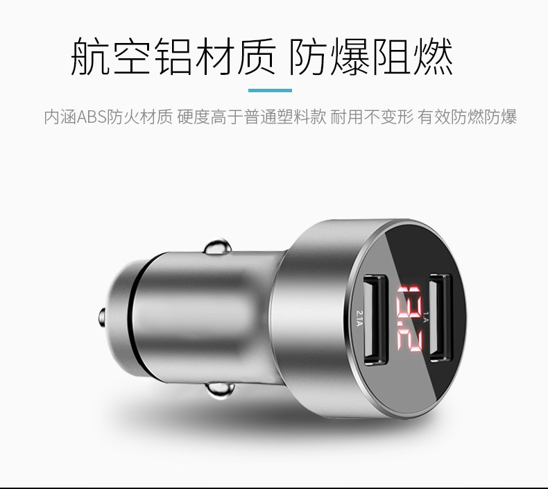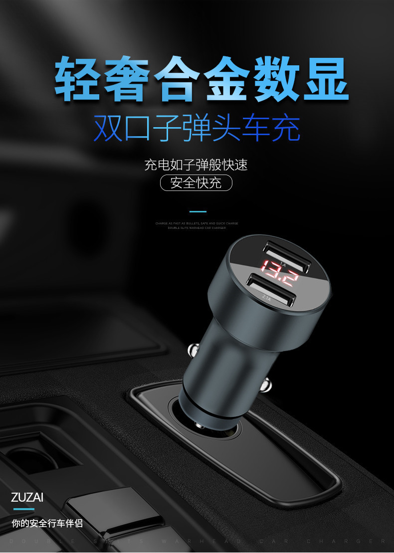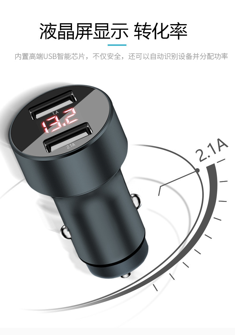 美汇特供:快充双USB车载充电器 汽车金属数显手机充电器 双口车充