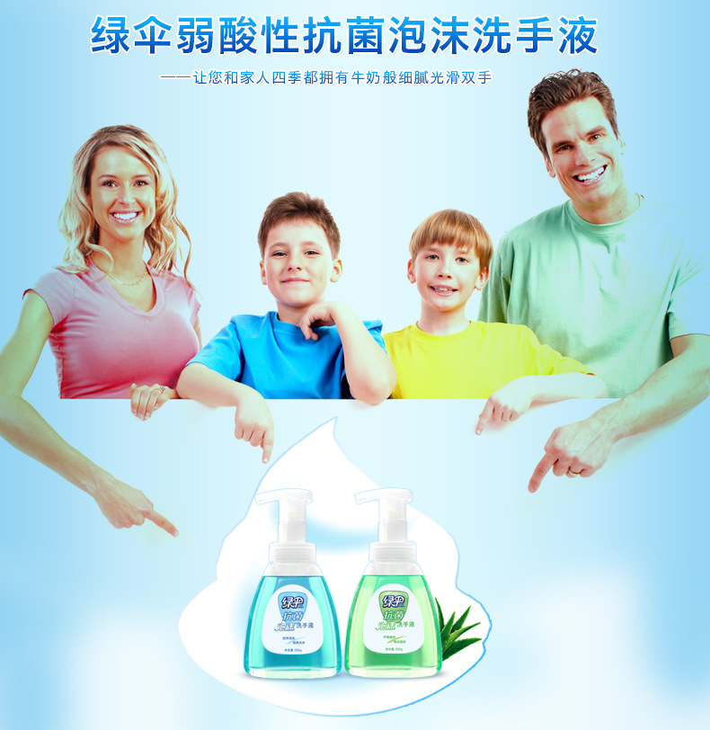 美汇特供:绿伞 抗菌泡沫洗手液 300g/瓶 抗菌洁净滋润护手洗手液