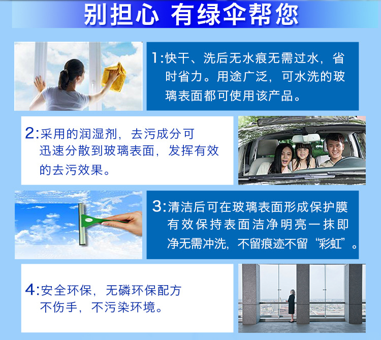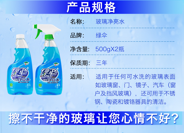 美汇特供:绿伞玻璃清洁剂500g*2瓶强力去污除垢玻璃清洗剂清洗玻璃家用擦玻璃水