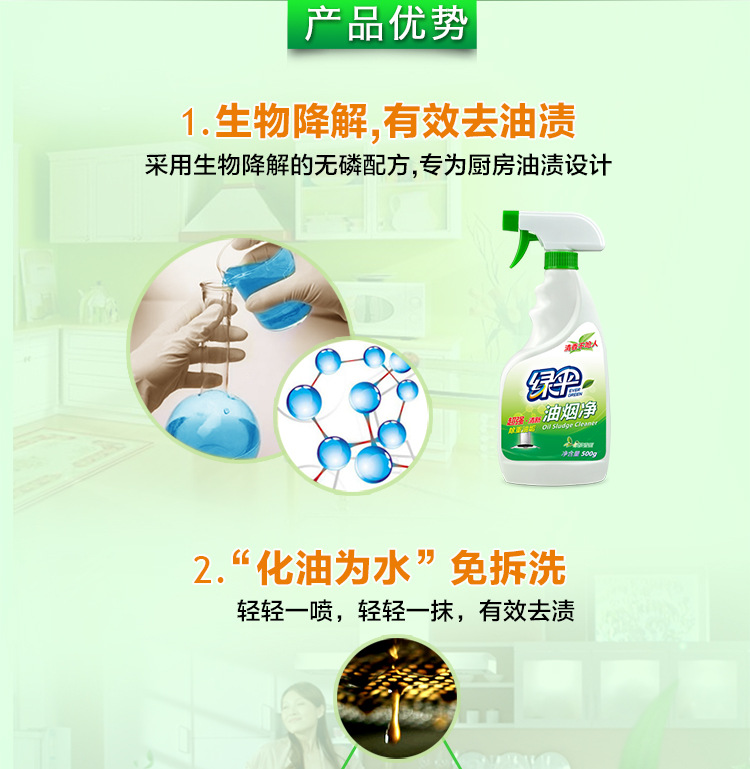 美汇特供:绿伞油烟净500g*2瓶 清洗厨房重油污清洁剂去油污除抽油烟机清洗剂