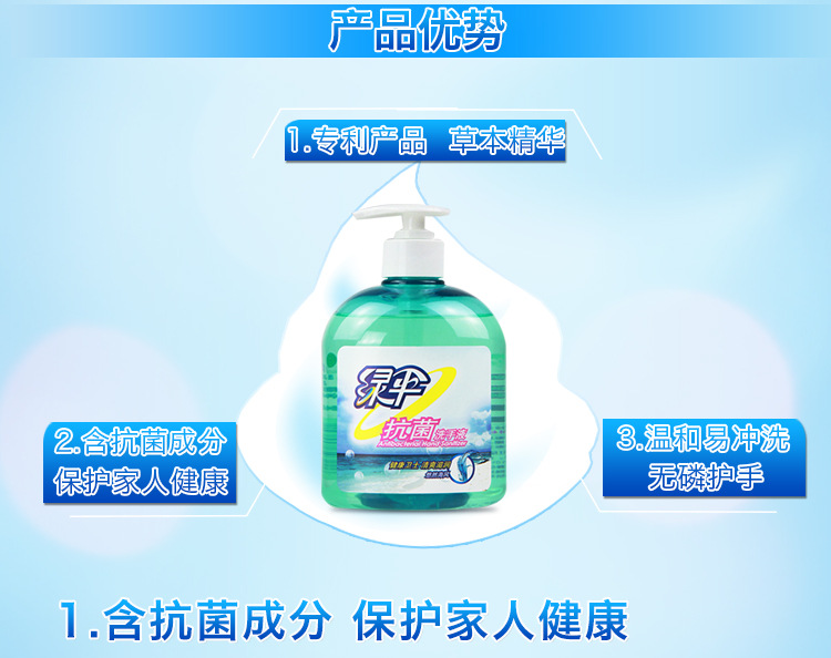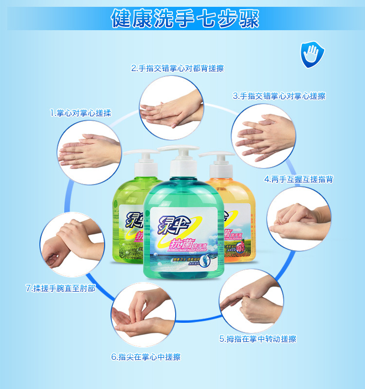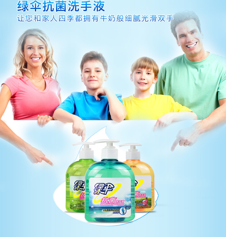 美汇特供:绿伞正品500g*3瓶抗菌洗手液护理家庭装清洁保湿滋润清香