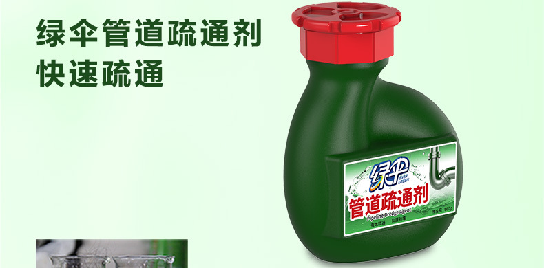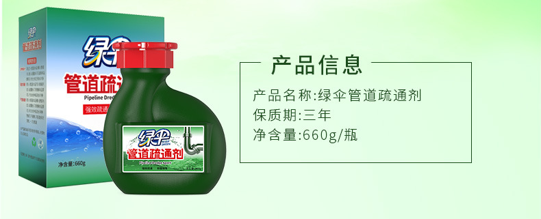 美汇特供:绿伞强力管道疏通剂下水道厨房疏通剂马桶堵塞疏通剂660g