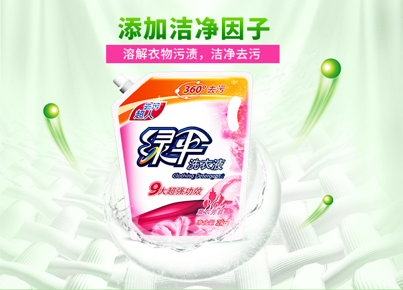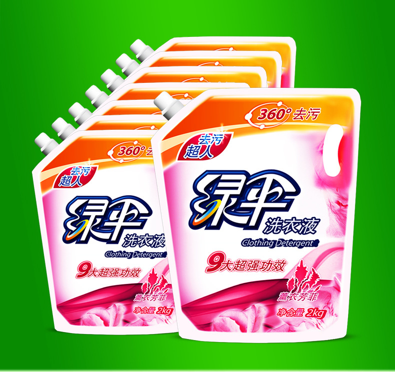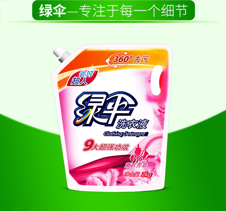 美汇特供:绿伞洗衣液2kg袋*8袋装 深层洁净护色全效薰衣草香洗衣液