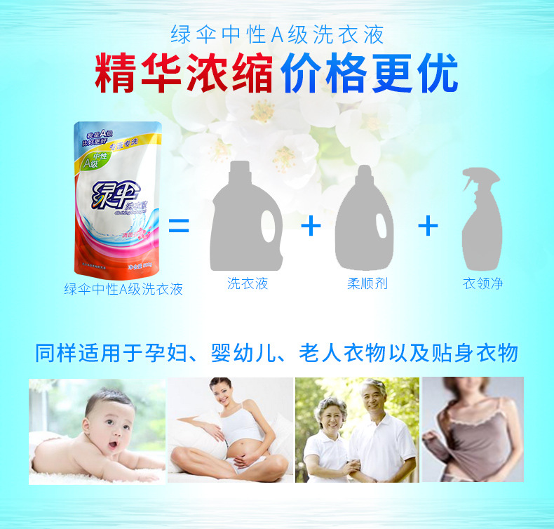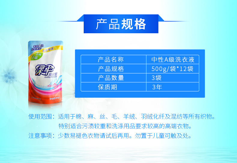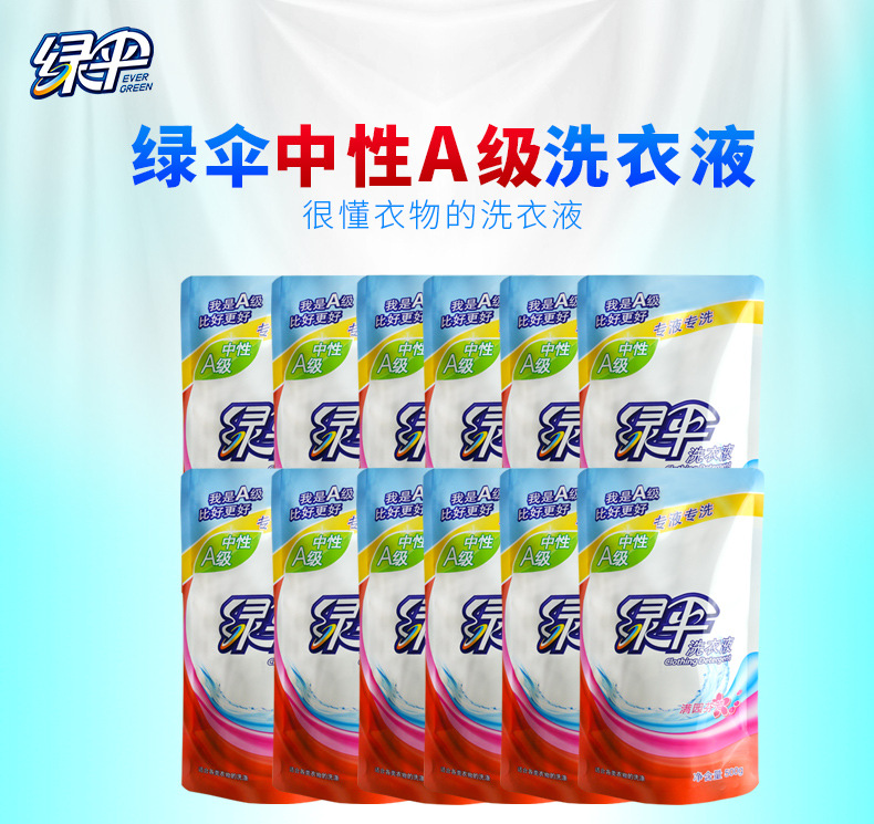 美汇特供:绿伞洗衣液500g*12袋装中A级洗衣液家庭装衣物洁净柔顺低泡