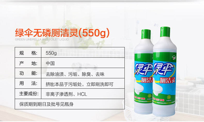 美汇特供:绿伞洁厕灵马桶清洁剂550g*3瓶 洁厕剂 厕所除臭洁厕液