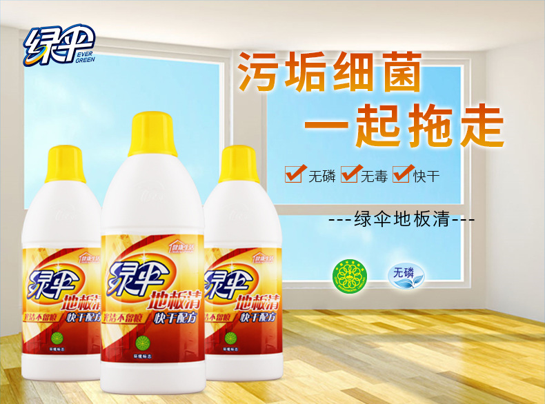 美汇特供:绿伞木地板清洁剂800g*3瓶实木复合地面净家用拖地液瓷砖家具清洗
