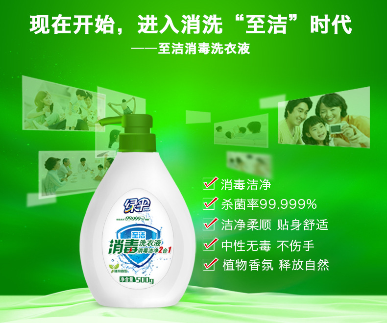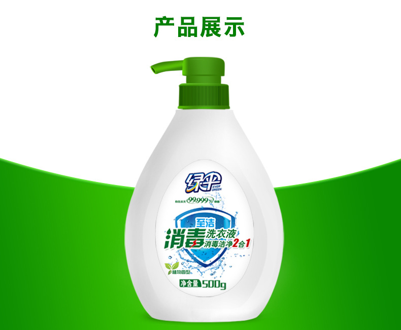 美汇特供:绿伞至洁消毒洗衣液500ml*2瓶男女通用抑菌家用衣物洗涤液