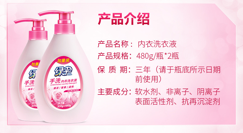 美汇特供:绿伞内衣洗衣液480*2瓶手洗专用内衣内裤清洗液男女通用