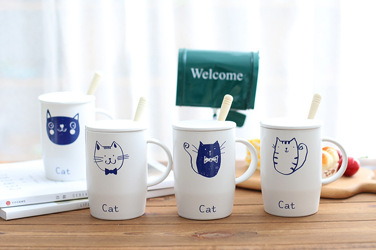 美汇特供:新款马克杯创意卡通猫喝水杯学生情侣礼品办公室家用咖啡陶瓷杯子