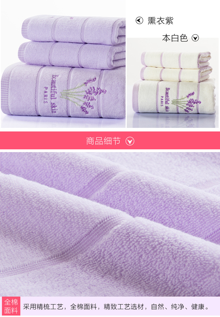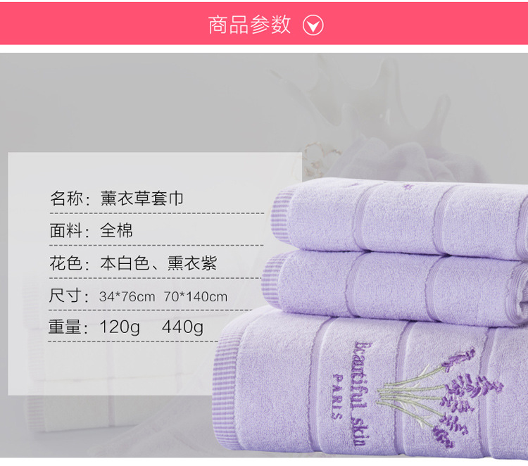 美汇特供: 百花毛巾全棉舒适薰衣草套巾浴巾70*140cm/毛巾34*76m