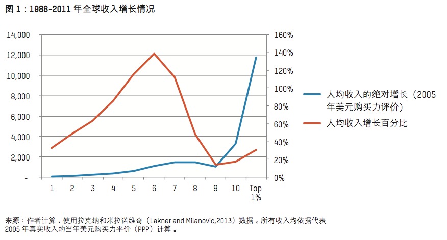该报告认为,近年来,全球不平等危机有增无减:2015年以来,世界最富有的1%人口所拥有的财富量已经超过了全球其余所有人口的财富总和,而当今世界财富的8个顶尖富豪所拥有的财富,相当于全球相对贫困的那一半人口的财富总和。