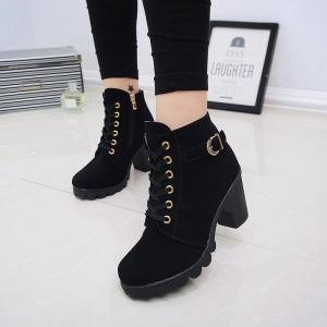 秋季英伦风女靴高跟鞋短靴鞋女粗