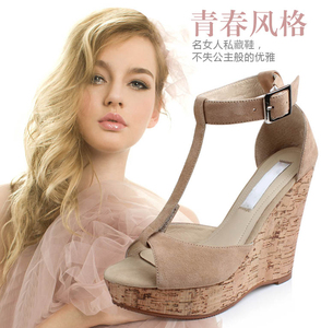 [限时特惠] 欧美2015夏季新款罗马坡跟凉鞋防水台鱼嘴鞋子厚底高跟